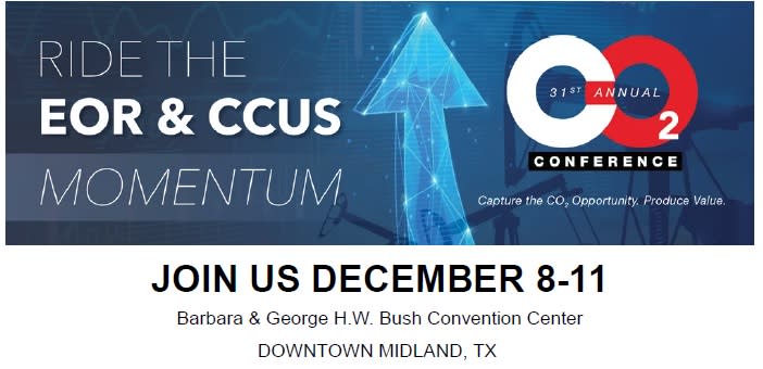 Make plans to attend the 31st Annual CO₂ Conference in Midland this December! The event kicks off Monday afternoon, December 8, 2025, with a ¾-day field trip to tour two major $700+ million projects. The conference continues with presentations highlighting the latest developments in the world of CO₂, including updates on the transformative 45Q tax credit CCUS parity provision included in the 2025 Budget Reconciliation Bill.