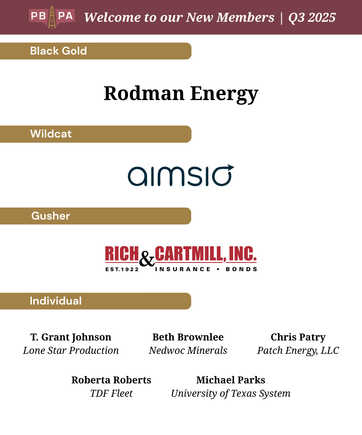 As we look ahead to 2026 membership renewals this fall, we want to thank you for the vital role you play in the PBPA. Your continued support strengthens our efforts to represent and protect the Permian Basin’s oil and gas industry, and we truly value your membership.