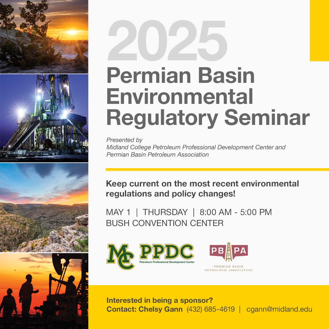 The Midland College Petroleum Professional Development Center (PPDC) and the Permian Basin Petroleum Association (PBPA) proudly present the annual Permian Basin Environmental Regulatory Seminar.