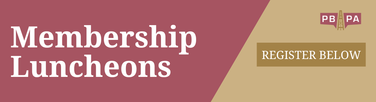 PBPA periodically holds membership luncheons featuring a distinguished guest speaker. Membership Luncheons are a great way to meet fellow PBPA members and hear from experts on topics that are pertinent to the oil & gas industry.